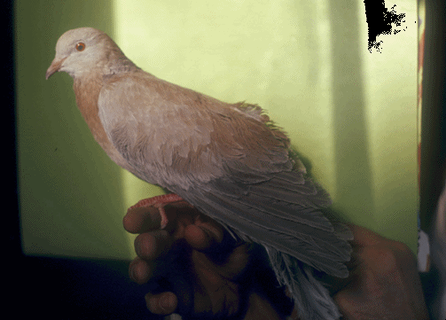 More Dove Pictures I, More Dove Pictures II, More Dove Pictures III, More Dove Pictures IV, Ice Dove Colors, Hatchling variants, Hybrids, Mutant Colors in other species, Oddities: Silky Doves, Flare, Bulge eyes, Bald Squabs, Dwarf Turtle Dove, Sex Ratios, Genetic Characters.