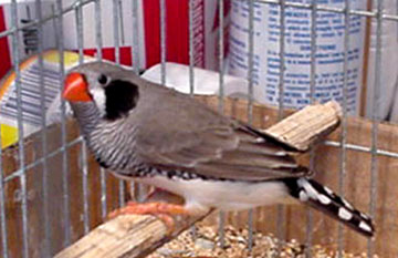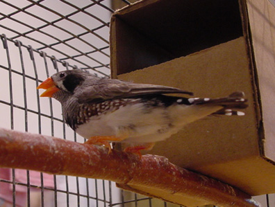 Zebra finch male black cheek/black sides from Dick Krame, Des Moines, Iowa.